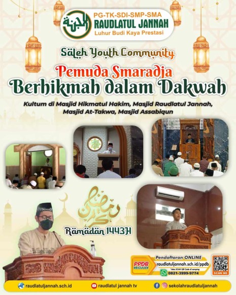 Alhamdulillah, sepanjang Ramadan 1443H tahun ini, beberapa pemuda Smaradja telah mengisi kultum di masjid-masjid yang bekerja sama dengan SMA Raudlatul Jannah. Masjid-masjid tersebut antara lain Masjid Raudlatul Jannah (Wisma Permai, Pepelegi), Masjid Hikmatul Hakim (Kedung Turi), Masjid At-Taqwa (Taman Pondok Legi), dan Masjid Assabiqun (Griya Wage Asri 2).
