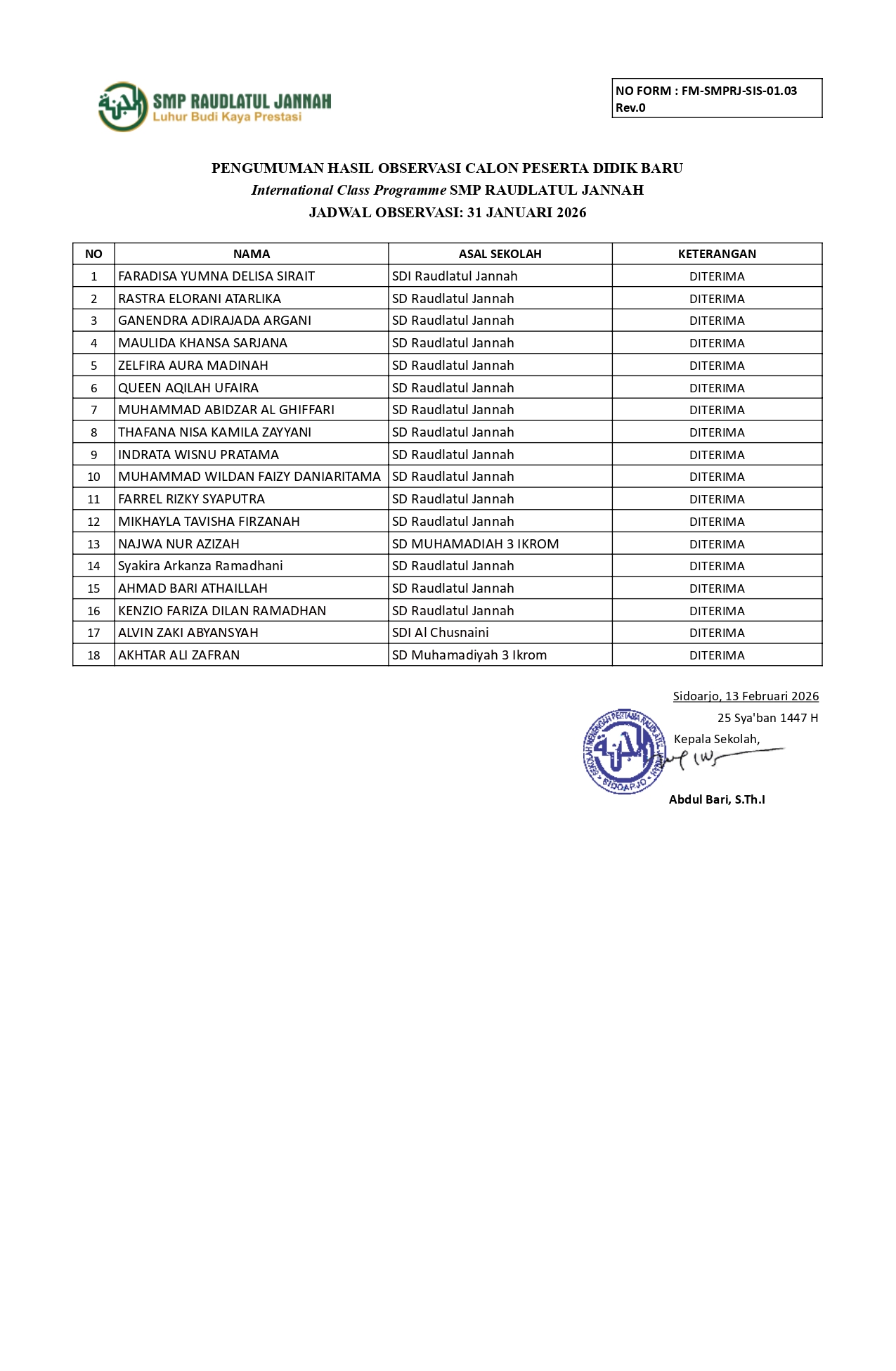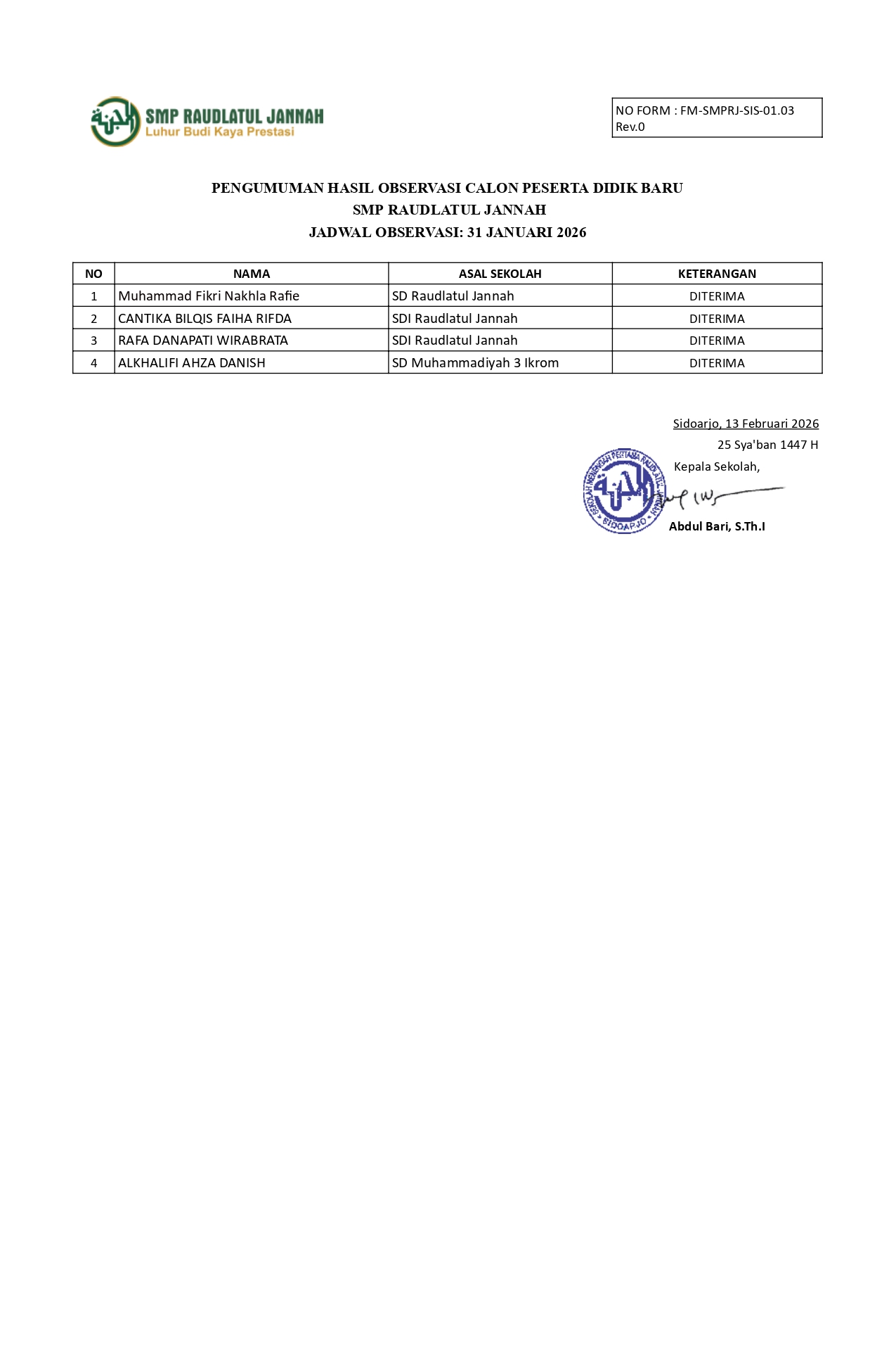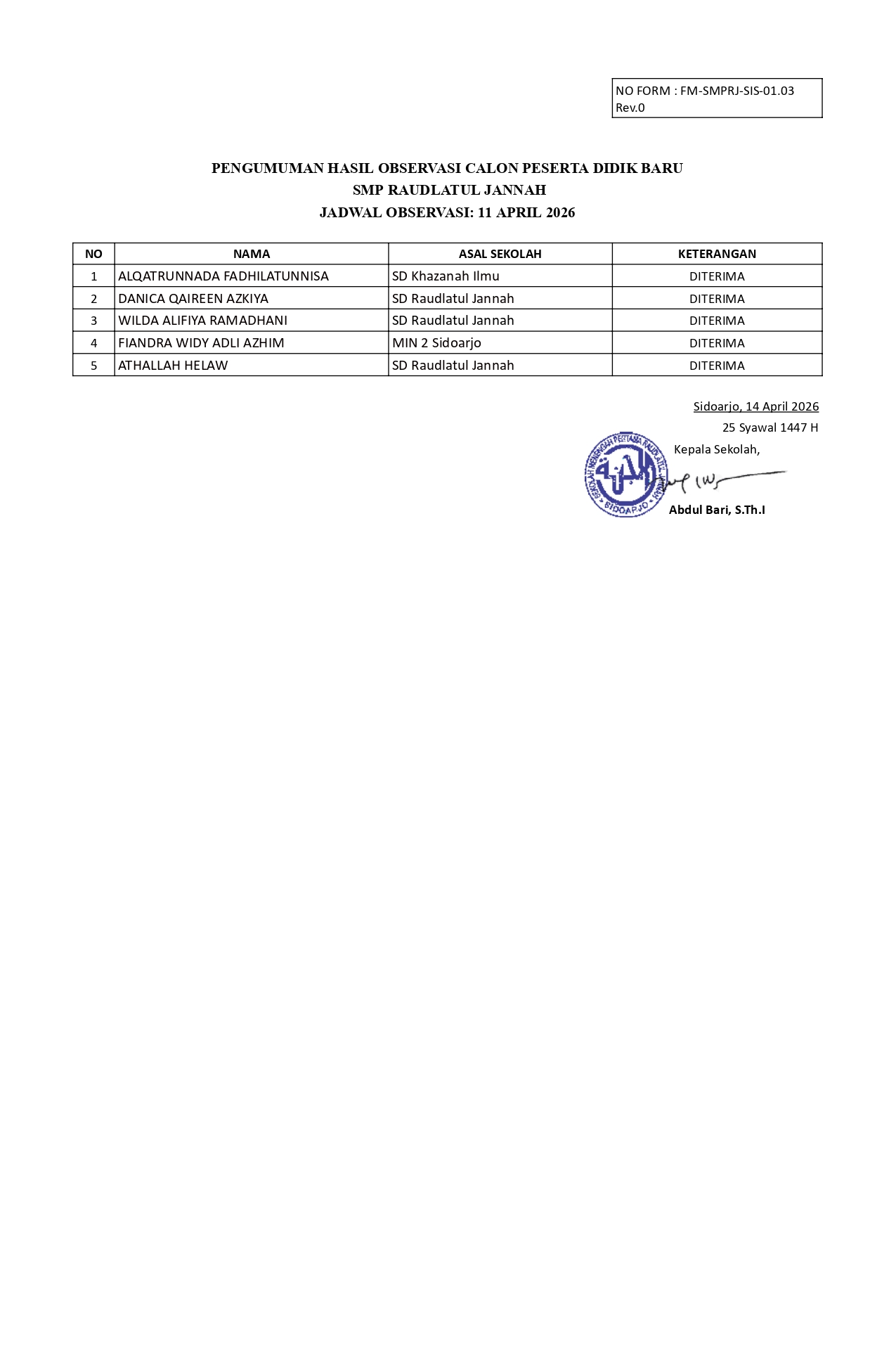 1. Bagi calon siswa yang telah diterima wajib menyelesaikan biaya daftar ulang sampai 17 Mei 2025.